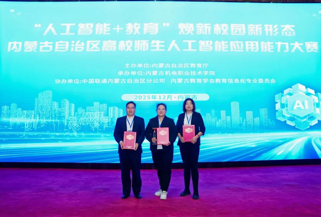12月21日,由自治区教育厅主办、内蒙古机电职业技术学院承办的全区首届高校师生人工智能应用能力大赛落下帷幕。我院教师李丹、刘保维、张丽团队的作品“老年照护技能考核智能陪练”在高职教师组中荣获一等奖;机电工程系学生张轩浩、宋子明、胡涵亮团队的作品“校园AI眼镜侧视仪”获得了高职学生组三等奖。